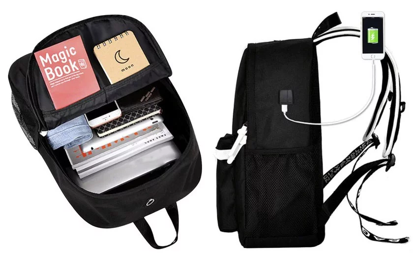Množstvo vreciek + káble a zámok – priestranný batoh s praktickým usporiadaním. Na prednej strane je vrecko na zips, po bokoch sú dve vrecká na fľaše. Hlavná priehradka s dvojitým zipsom + 4 menšie vrecká (1 na zips). Súčasťou balenia je aj peračník, USB a mini jack káble a kódový visiaci zámok – skvelý na školu aj výlety.