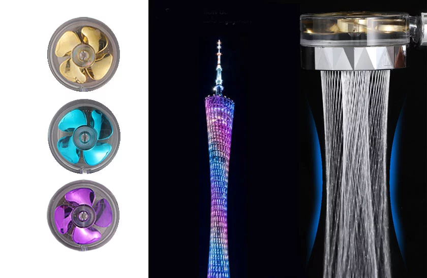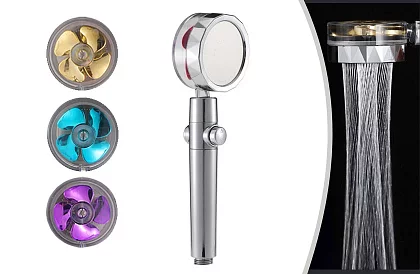 Originálna sprchová hlavica TurboShower s malým ventilátorom vo vnútri. Hlavica poskytuje zvýšený prietok vody i lepší tlak než u klasických sprchových hlavíc. Sprchová hlavica zaujme i svojim netradičným prúdom vody, ktorý pripomína špirálový prúd. Prúd vody je možné zastaviť stlačením kolíčku „STOP“, čo zvládnete len jednou rukou a druhou si pohodlne namydlíte vlasy. Vďaka mnohým špeciálne navrhnutým tryskám ušetríte až 30 % vody ročne. To sa môže samozrejme znateľne prejaviť i na vyúčtovaní za vodu.