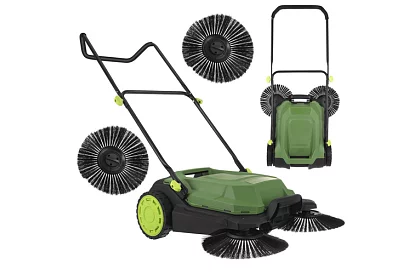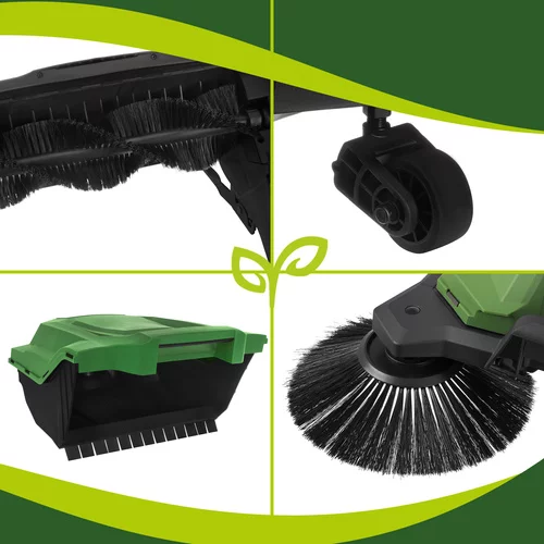 Praktický ručný zametač umožňuje rýchle a pohodlné čistenie chodníkov, príjazdových ciest, terás i dlažobných kociek bez námahy s klasickým metlom. Vďaka zametaciemu systému so tromi kefami efektívne zbiera prach, lístie i drobné nečistoty a ukladá ich priamo do veľkej zbernej nádoby s objemom 24 litrov. Široká zametacia dráha 680 mm výrazne urýchľuje prácu a umožňuje vyčistiť veľkú plochu počas krátkej doby. Stabilný trojkolesový podvozok a nastaviteľná rukoväť zabezpečujú pohodlné ovládanie a jednoduchú manipuláciu pri upratovaní okolo domu, na dvore alebo na záhrade.