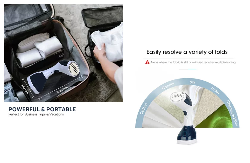Parný naparovač odevov dodá vášmu outfitu svieži vzhľad už behom niekoľko chvíľ. Je ideálnym pomocníkom na hektické rána. Dajte zbohom zápoleniu so žehliacou doskou a žehličkou. Ručný naparovač si bez problémov poradí nie len s vyhladením záhybov na oblečení, ale veľmi jednoducho s ním upravíte i záclony, bez toho, aby ste ich museli snímať z garniží, alebo ho použite trebárs i na sedačky a ložný textil. Veľmi dobre vyžehlí i oblečenie na ramienku.