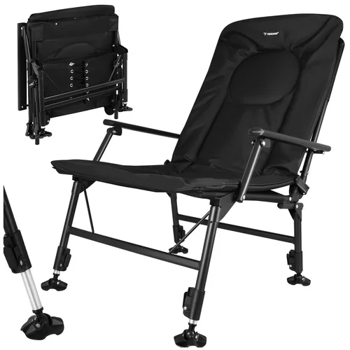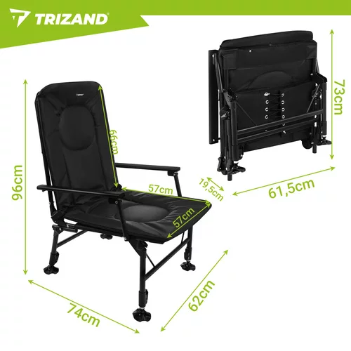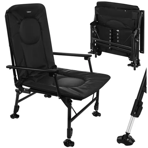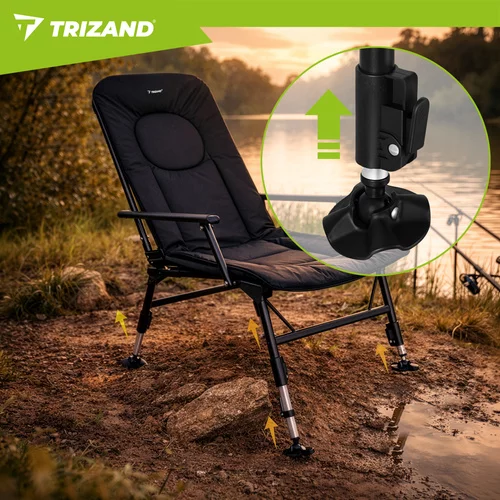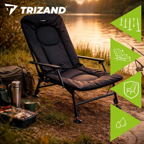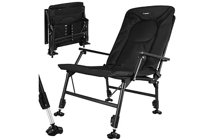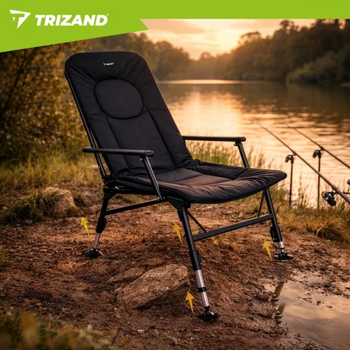 Pohodlné rybárske kreslo je navrhnuté pre dlhé hodiny pri vode, pri kempovaní aj oddychu v prírode. Vďaka nastaviteľnému operadlu, mäkkému polstrovanému sedáku a pevným podrúčkam ponúka vysoký komfort pri sedení. Stabilná konštrukcia s nastaviteľnými nohami umožňuje bezpečné použitie aj na nerovnom teréne. Skladacie prevedenie navyše uľahčuje prepravu aj uskladnenie.