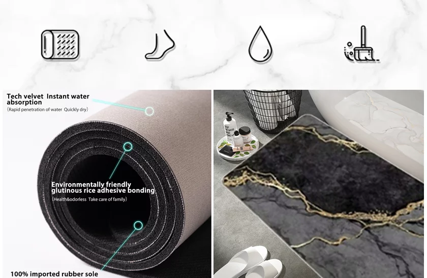 Absorpčná rýchlo schnúca predložka nie len do kúpeľne. Ozdobí každú miestnosť vo vašom dome. Mimoriadne príjemná predložka nie len do kúpeľne, vyrobená z inovatívnej nasiakavej peny. Účinne chráni proti studenej podlahe a poskytuje pohodlie pri výstupe z vane, alebo sprchového kúta. Protišmyková vrstva zabraňuje ukĺznutiu.