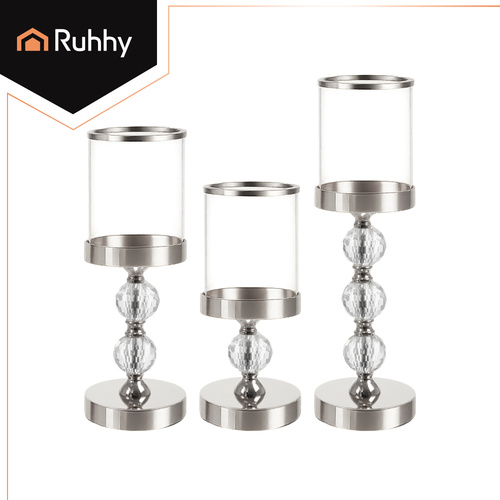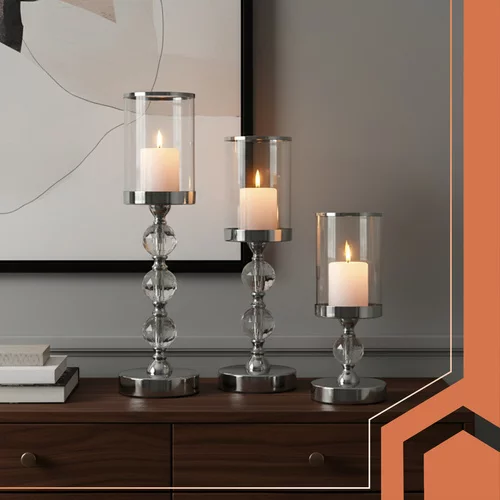 Elegantná súprava glamour svietnikov vyniká luxusným vzhľadom a prepracovanými detailmi, ktoré okamžite pozdvihnú atmosféru každého interiéru. Kombinácia troch rôznych výšok, lesklých krištáľových prvkov a zrkadlových vložiek vytvára pôsobivý svetelný efekt a dodáva priestoru romantiku, teplo i noblesu. Ideálna voľba pre každodennú dekoráciu i slávnostné príležitosti.