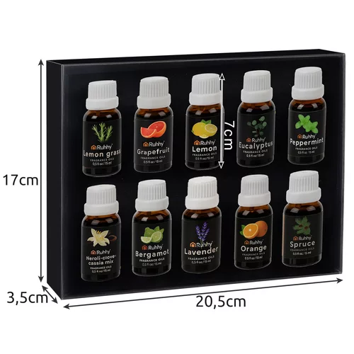 Esenciálne oleje RUHHY prinášajú do vášho domova príjemnú vôňu a harmóniu. Každá fľaštička je hygienicky uzavretá a zaručuje čerstvosť, čím umožňuje okamžité použitie v difuzéroch, aromalampách, zvlhčovačoch alebo sviečkach. Sada je navyše elegantne zabalená a vhodná ako originálny darček, ktorý poteší každého milovníka vôní.