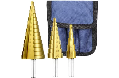 Sada kuželových vrtákov je ideálna pre rýchle a presné vŕtanie otvorov v PVC, tenkostenných plechoch aj kovoch. Vrtáky sú vyrobené z odolnej ložiskovej ocele a potiahnuté titanom, čo zaisťuje dlhú životnosť a vysokú odolnosť proti opotrebovaniu. Stupňovitý tvar vrtákov umožňuje jedným nástrojom vyvŕtať otvory rôznych priemerov, pričom číslovanie na každom kroku zaisťuje jednoduchú orientáciu. Praktický kufrík uľahčuje skladovanie aj prepravu vrtákov a chráni ich pred poškodením.
