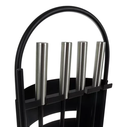 Robustná a elegantná sada 5 v 1 obsahuje všetky potrebné prvky pre bezpečnú a pohodlnú údržbu krbov, kachlí a iných typov ohňov – kliešte, lopatu, metlu, pohrabáč a stojan. Každý nástroj je vyrobený z ocele a nerezovej ocele, čo zaisťuje odolnosť voči vysokým teplotám a každodennému používaniu. Vďaka prehľadnému stojanu je všetko príslušenstvo vždy na svojom mieste, ľahko prístupné a elegantne usporiadané.