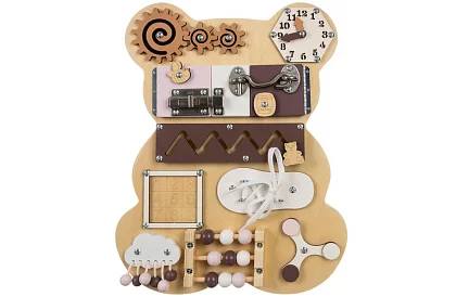 Senzorická manipulačná doska v tvare medvedíka je zábavná a zároveň vzdelávacia hračka, ktorá prirodzene podporuje rozvoj dieťaťa. Ponúka pestrú škálu aktivít, vďaka ktorým si dieťa trénuje jemnú motoriku, sústredenie aj logické myslenie. Hravou formou učí zvládať každodenné zručnosti a objavovať svet okolo seba vlastným tempom.