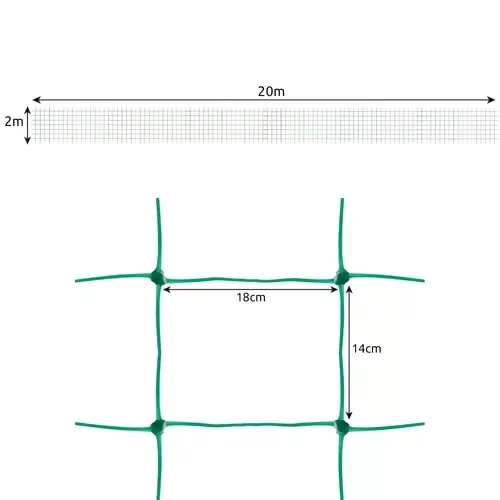 Efektívna sieťová podpora umožňuje popínavým rastlinám, ako sú vinná réva, hrach, fazuľa alebo uhorky, rásť vertikálne a zdravo. Správne napnutá sieť zabezpečuje lepšiu cirkuláciu vzduchu, znižuje riziko chorôb a uľahčuje zber plodov. Vďaka zelenej farbe prakticky splynie s rastlinami a poskytuje stabilnú a estetickú oporu pre okrasné aj úžitkové rastliny na záhrade, balkóne či pergole.
