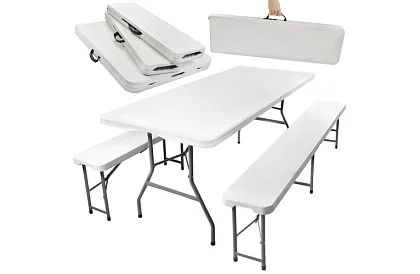 Praktická cateringová sada vytvára počas pár minút pohodlné zázemie pre záhradné oslavy, grilovanie aj veľké akcie. Pevná oceľová konštrukcia, odolná plastová doska a rýchle skladanie zabezpečujú maximálny komfort, stabilitu a jednoduchú prepravu. Ideálne riešenie pre vonkajšie použitie aj domáce zázemie, kde je potrebný spoľahlivý a skladný nábytok.