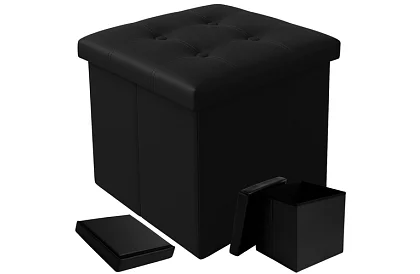 • Skladací taburet s úložným priestorom – puf čierny