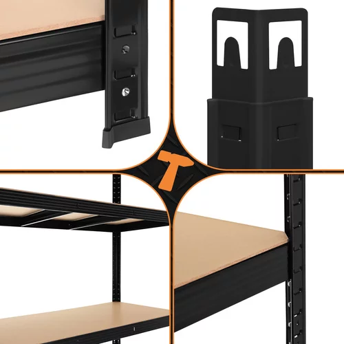 Regál ponúka robustný a stabilný úložný priestor pre ťažké predmety v garáži, pivnici či dielni. Vďaka odolnému kovovému rámu a výstužným MDF policiam je možné bezpečne uložiť aj veľmi ťažké veci a ľahko udržiavať poriadok. Flexibilné nastavenie výšky políc a bezšróbová montáž umožňujú rýchle zostavenie a prispôsobenie priestoru aktuálnym potrebám.
