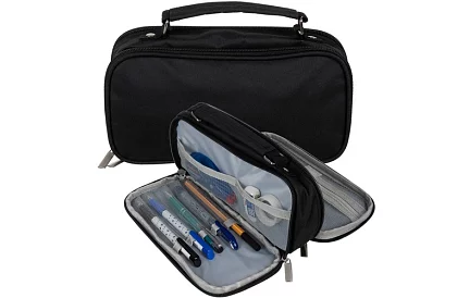 Dvojitý puzdro ponúka vysokú odolnosť, priestrannosť a pohodlie pri každodennom používaní. Vyrobené z kvalitného polyesteru, odolného proti opotrebovaniu a poškodeniu, zaisťuje dlhú životnosť a spoľahlivú ochranu školských či kancelárskych potrieb. Praktické držadlo umožňuje jednoduché prenášanie a pohodlné použitie kdekoľvek.
