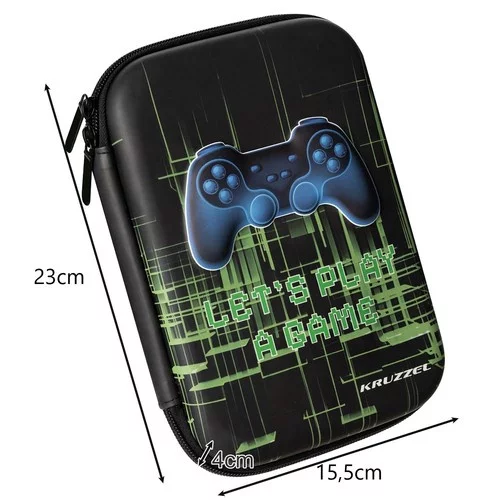 Originálny a praktický puzdro s 3D grafikou „Let’s Play A Game“ zaujme každého školáka alebo kreatívca. Kombinuje moderný dizajn s funkčnosťou, ktorá uľahčuje organizáciu školských potrieb. Vyrobené z pevnej a ľahkej EVA peny, ktorá odoláva nárazom a vlhkosti, je ideálne na každodenné použitie v škole. Puzdro umožňuje mať všetky písacie potreby a drobnosti prehľadne na jednom mieste a vďaka chránenému priestoru pod krídlom je možné uložiť aj tablet do veľkosti 8,5".