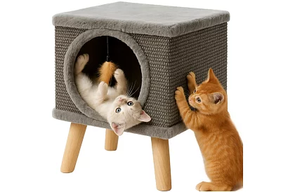 Praktické riešenie pre každú mačku spája škrabadlo a útulný pelíšek v jednom. Pevná konštrukcia a kvalitné materiály zaisťujú stabilitu aj pri intenzívnej hre, zatiaľ čo mäkký interiér poskytuje ideálne miesto na oddych. Prírodný sisal umožňuje bezpečné brúsenie pazúrov a pomáha chrániť nábytok. Vďaka kompaktným rozmerom a modernému vzhľadu skvele zapadne do každého interiéru.