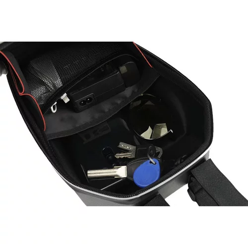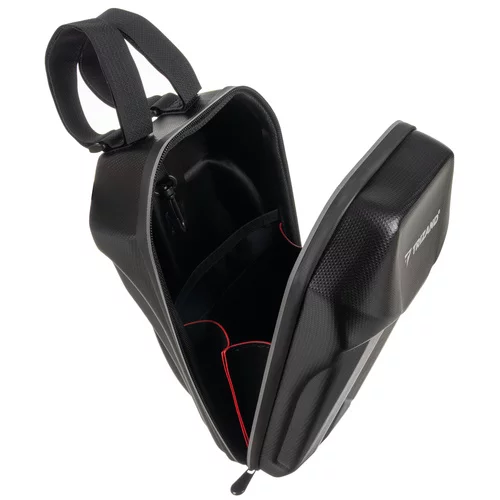 Praktická a univerzálna taška ponúka stabilný úložný priestor priamo na riadidlách kolobežky. Vodoodolný materiál chráni obsah pred dažďom a vlhkosťou, zatiaľ čo priestranná komora a štyri vrecká pojmú telefón, peňaženku, kľúče, fľašu vody a ďalšie nevyhnutnosti pri jazde.