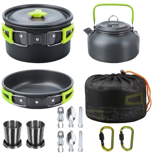 Praktická a kompaktná sada riadu je ideálna na varenie doma aj na cestách, pri kempovaní alebo v stane. Umožňuje pohodlnú prípravu chutných jedál pre dve osoby. Sklápacie rukoväte a príbory zabezpečujú jednoduchý transport a úsporu miesta, zatiaľ čo nepriľnavý povrch umožňuje jednoduché varenie a čistenie. Sada ponúka všetko potrebné pre komfortné varenie aj pri outdoorových aktivitách.