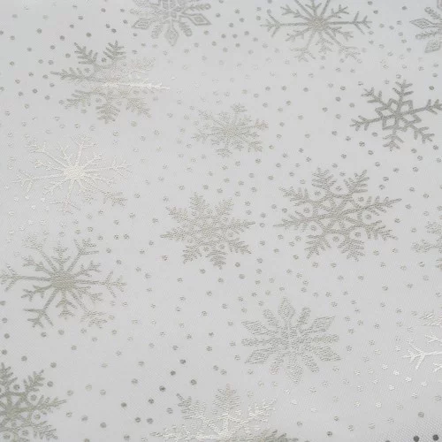 Vytvára slávnostnú atmosféru a zútulňuje každý interiér. Dekoratívny obrus so striebornými snehovými vločkami prináša do domácnosti kúzelnú náladu a dodáva vianočnému stolovaniu elegantný a slávnostný vzhľad. Ochrana povrchu stola zabezpečí, že stôl zostane bez škvŕn a poškriabania pri podávaní jedál a nápojov. Jednoduchá údržba umožňuje rýchle čistenie a dlhodobé používanie po mnoho sezón.