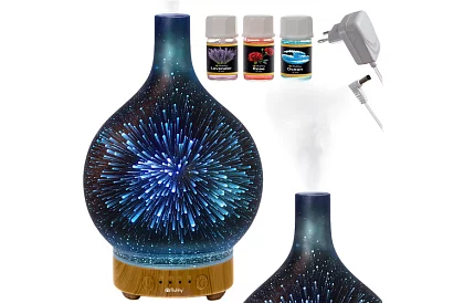 Štýlový zvlhčovač vzduchu a aroma difuzér 3 v 1 vytvára príjemnú atmosféru plnú pokoja a sviežosti. Ultrazvuková technológia rozptyľuje jemnú hmlu ticho a bez zahriatia vody, takže je ideálny do spálne, obývačky aj kancelárie. 14 svetelných odtieňov umožňuje prispôsobiť náladu priestoru, zatiaľ čo pár kvapiek esenciálneho oleja premení miestnosť na relaxačnú zónu pre aromaterapiu aj zvlhčenie vzduchu.