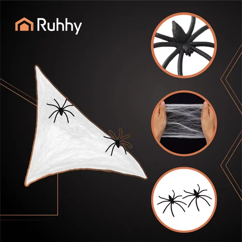 Veľká pavučina s dvoma pavúkmi je skvelou dekoráciou pre Halloween, tematické večierky, scénografie alebo záhradné priestory pod strechou. Pružný a ľahký materiál umožňuje vytvoriť pútavú a realistickú pavučinu, ktorú je možné zavesiť nad dvere, zábradlie, steny, lampy či stoly. Ideálne pre hrôzostrašnú atmosféru, prekvapenie a zábavu.