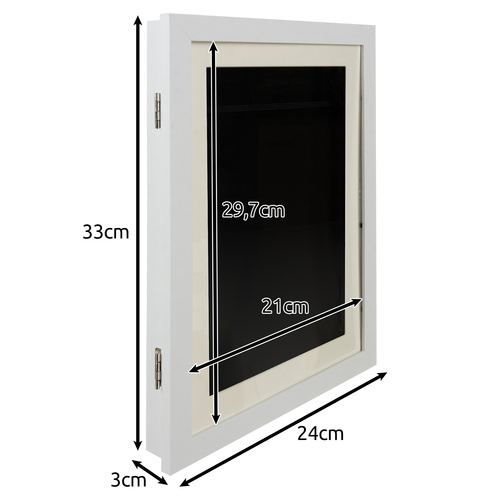 Elegantný otvárací rám umožňuje prehľadne vystaviť aj dlhodobo uchovať deti výkresy, školské práce a kreatívnu tvorbu. Vďaka chytrému otváraciemu mechanizmu je možné obrázky rýchlo meniť bez zloženia rámu zo steny a postupne tak vytvárať osobnú galériu malého umelca. Vysoká kapacita šetrí miesto a zároveň chráni kresby pred poškodením.