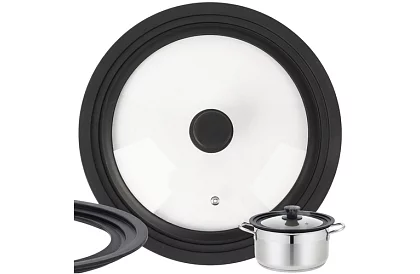 Umožňuje jedno víko pre rôzne hrnce a panvice, čím šetrí miesto a uľahčuje varenie. Tepelne odolné sklo umožňuje sledovať pokrm bez zdvíhania poklice a silikónový okraj zaisťuje tesnosť a chráni riady pred poškriabaním. Ergonomická rukoväť a praktický parný otvor zvyšujú pohodlie a bezpečnosť pri každodennom používaní. Ideálne pre malé kuchyne, rodiny aj kulinárskych nadšencov.