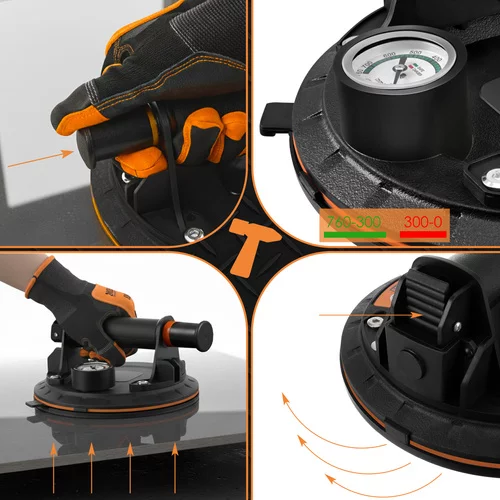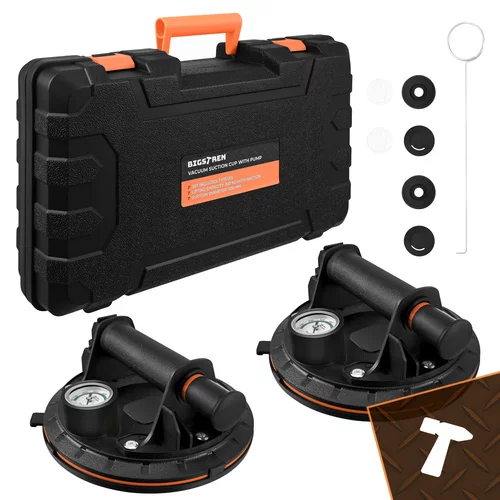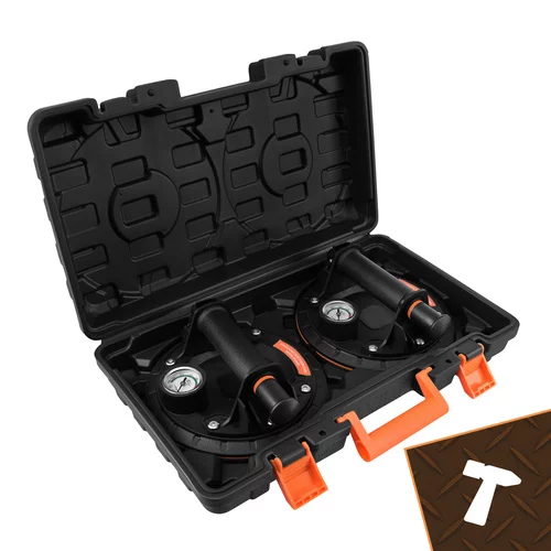 Profesionálny set vakuových prísaviek je určený na bezpečné prenášanie ťažkých aj citlivých materiálov, ako sú obklady, dlaždice, sklo, dosky alebo hladké panely. Vďaka výveve s pumpou, tlakoměrom a robustnou konštrukciou umožňuje istú manipuláciu bez rizika poškodenia povrchu. Praktické balenie so dvoma kusmi zvyšuje stabilitu pri práci.