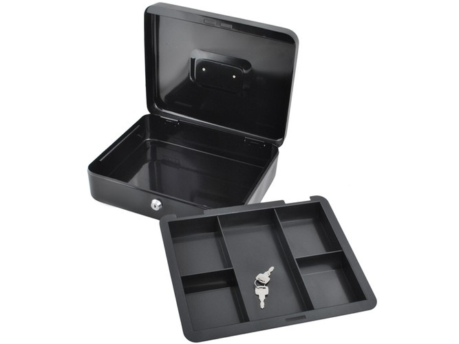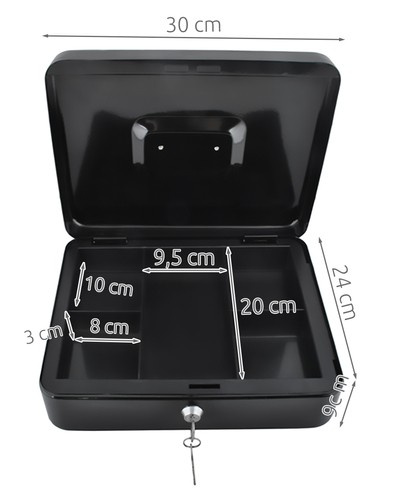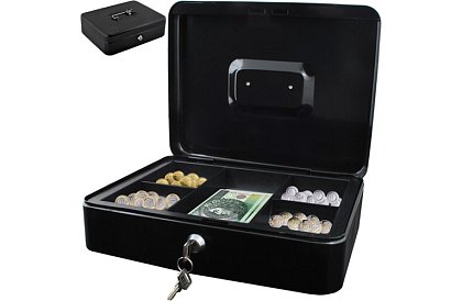 Veľká kovová pokladňa je praktické a bezpečné riešenie pre uloženie hotovosti, dokladov, cenných papierov i drobných cenností. Vďaka pevnej oceľovej konštrukcii a spoľahlivému patentovému zámku ochráni obsah pred neoprávneným prístupom. Ideálne pre domácnosť, kanceláriu, prevádzku i prepravu peňazí.