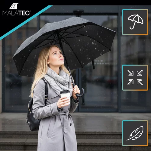 Chráňte sa pred dažďom a vetrom s odolným a praktickým dáždnikom Malatec. Vďaka rýchlemu otváraciemu tlačidlu ho počas sekúnd pripravíte na použitie. Ľahký a kompaktný, ľahko sa zmestí do kabelky alebo batohu, a jeho pevný 8ramenný rám odolá poryvom vetra. Trvanlivá polyesterová strieška rýchlo schne, zachováva farbu a poskytuje spoľahlivú ochranu.