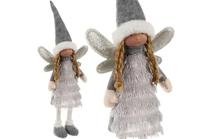 Elegantná vianočná víla so striebornými krídlami prináša do interiéru rozprávkovú atmosféru. Jemné trblietavé krídla a zimný outfit s rolákovými šatami a kožušinovou čiapkou dodávajú dekorácii slávnostné čaro. Stabilná konštrukcia umožňuje bezpečné umiestnenie na stôl, krb, parapet alebo pod vianočný stromček. Víla je ideálna ako samostatná dekorácia alebo súčasť vianočného aranžmánu.
