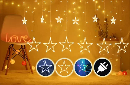 S týmto pôsobivým LED závesom ľahko docielite efektnej vianočnej výzdoby. Zo základne sú spustené povrazce svetiel, ktoré sú striedavo väčšími a menšími hviezdami. Dať ho môžete do okna, na stenu alebo kamkoľvek inam v interiéri. Skvele sa hodí tiež do detskej izby.