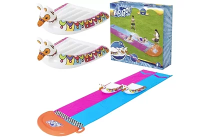 Premeníte záhradu na letné zábavné centrum s originálnou vodnou šmykľavkou Lama Rama, ktorá ponúkne deťom množstvo pohybu, smiechu a osvieženia. Dvojpruhová šmykľavka o dĺžke takmer 5 metrov je ideálna na preteky aj spoločné hranie. Po pripojení záhradnej hadice sa aktivujú vodné sprchy, ktoré udržujú povrch klzký a spríjemňujú jazdu. Súčasťou balenia sú aj dve nafukovacie podložky v tvare lamy pre ešte väčšiu zábavu.