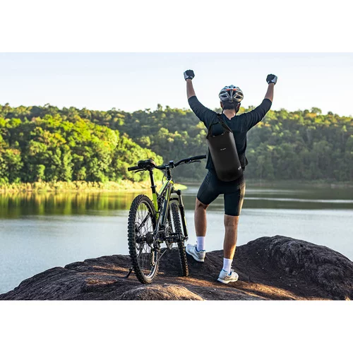 Praktický vodotesný vak chráni cenné predmety pred vlhkosťou a poškodením pri vonkajších aktivitách. Odolný materiál zaručuje spoľahlivosť aj pri intenzívnom použití v daždi alebo pri športe. Rýchle uzatváranie a nastaviteľný popruh umožňujú pohodlné nosenie a jednoduché pripevnenie na väčšie predmety, čo uľahčuje transport a organizáciu počas výletov, kajakárčenia alebo rybolovu.