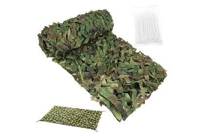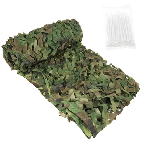 Lesná maskovacia sieť poskytuje efektívny tieň, súkromie a ochranu majetku či vybavenia v teréne. Ideálne pre záhradu, kempovanie, airsoftové hry alebo prácu v prírode, ponúka ľahkú, vodeodolnú a rýchloschnúcu konštrukciu, ktorú je možné používať celú sezónu bez ohľadu na poveternostné podmienky. Súčasťou sady je 100 sťahovacích pásikov, ktoré umožňujú rýchlu a jednoduchú montáž.