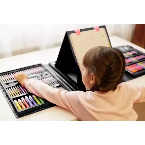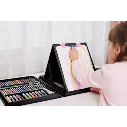 Bohatá výtvarná sada v praktickom kufríku ponúka všetko, čo deti potrebujú na kreslenie, maľovanie aj kreatívne hranie. Prehľadne usporiadané priehradky udržia všetky pomôcky na svojom mieste doma aj na cestách. Vďaka bezpečným, netoxickým materiálom a premyslenému prevedeniu je sada vhodná na každodenné používanie a podporuje rozvoj fantázie, jemnej motoriky aj radosti z tvorenia. Ideálne ako darček, ktorý zabaví na dlhé hodiny.