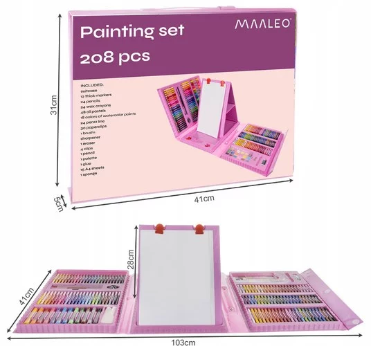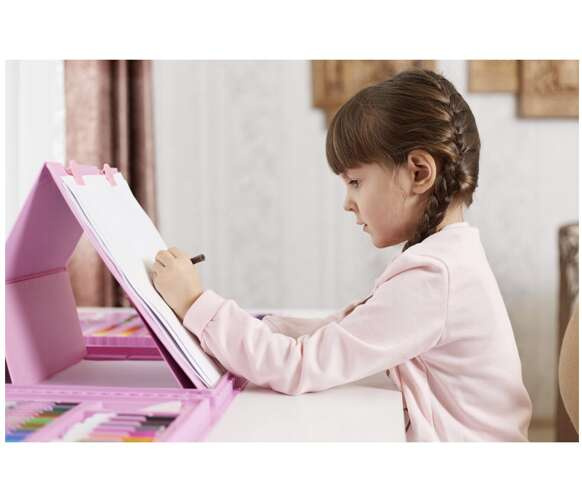 Veľká kreatívna sada, ktorá deťom otvorí svet fantázie, farieb a tvorenia. Praktický kufor s premyslenými priehradkami udrží všetky pomôcky prehľadne usporiadané doma aj na cestách. Vďaka bohatému obsahu si deti môžu kresliť, maľovať aj tvoriť spoločne, rozvíjať jemnú motoriku, kreativitu a sústredenie. Ideálna voľba pre dlhé hodiny zábavy aj ako vydarený darček.