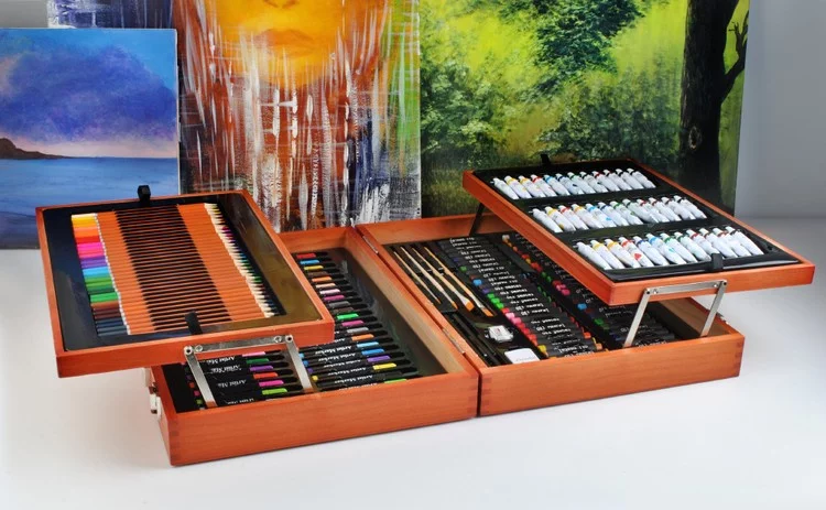 Objavte svet kreativity a umenia s výtvarnou sadou obsahujúcou 177 prvkov na maľovanie a kreslenie. Drevený kufor s pevným sponami drží všetko pohromade, takže sa sada nepoškodí ani počas prepravy a je ideálna na použitie doma aj na cestách. Sada je vhodná pre mladšie aj staršie deti, rovnako ako pre dospelých, ktorí chcú rozvíjať svoj talent a kreativitu. Elegantné drevené puzdro zaručuje, že každý prvok má svoje miesto, a poskytuje jednoduchý prehľad aj rýchly prístup k farbám, pastelom či štetcom.
