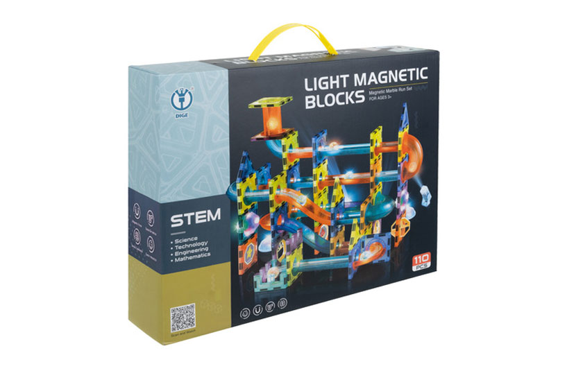 Vďaka silným magnetom sa všetky dieliky pevne spájajú – deti si môžu jednoducho postaviť veže, mosty, špirály, labyrinty či osvetlené guľôčkové dráhy, ktoré sa premenia na úžasnú svetelnú šou. Každá stavba žiari farbami a doslova ožíva!