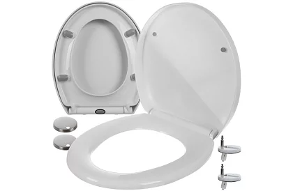 Špeciálne profilované toaletné sedátko s lemom ponúka komfortné a tiché zatváranie. Vyrobené z kvalitného polypropylénu (PP) odolného voči vlhkosti, ľahko sa čistí a hodí sa pre väčšinu toaletných misiek na trhu. Nastaviteľná rozteč pántov 6–23 cm a skrutková montáž zabezpečujú bezpečné a pevné uchytenie.