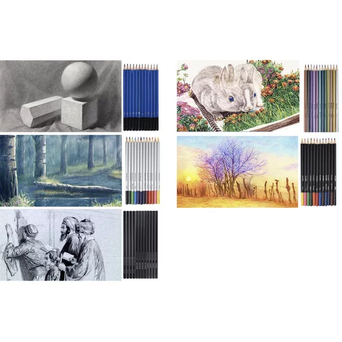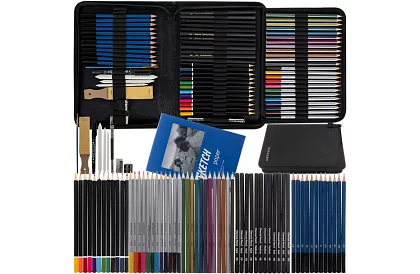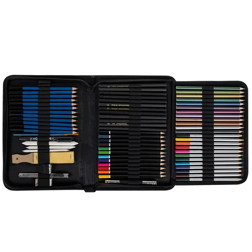 Komplexná kresliarska sada ponúka všetko potrebné pre skicovanie, kreslenie aj tienenie v jednom praktickom balení. Bohatý výber nástrojov umožňuje vytvárať detailné skice, ilustrácie aj umelecké štúdie. Elegantné látkové puzdro s prehľadným usporiadaním udržuje všetky pomôcky bezpečne na svojom mieste a zároveň uľahčuje prenášanie. Vďaka širokej škále ceruziek rôznych tvrdostí, pastelek a doplnkov získa používateľ maximálnu kreatívnu slobodu pri práci. Ideálne riešenie pre začínajúcich kresliarov, študentov aj pokročilých umelcov, ktorí chcú mať všetky základné nástroje vždy po ruke.