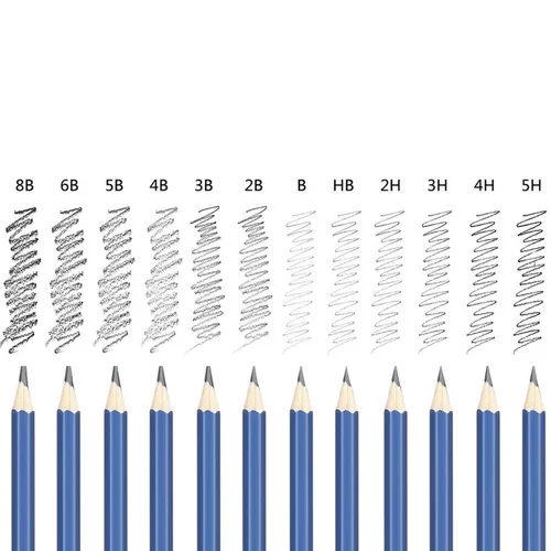 • 12 skicovacích ceruziek (2H, 3H, 4H, 5H, HB, B, 2B, 3B, 4B, 5B, 6B, 8B)