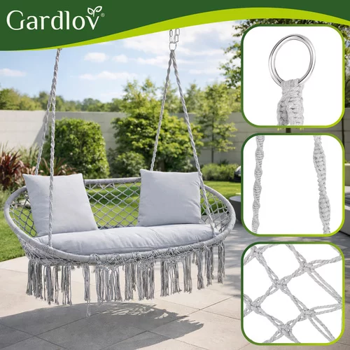 Užite si skutočný odpočinok priamo na záhrade, terase alebo balkóne s priestrannou dvojmiestnou hojdacou sieťou Gardlov Stork's Nest. Jemné hojdanie, mäkké vankúše a ergonomické sedadlo poskytujú komfort a relaxáciu pre každého používateľa. Hojdacia sieť je ideálna na odpočinok, spoločné chvíle s rodinou či rozhovory s priateľmi, pričom jej elegantný boho dizajn sa stane dekoratívnym prvkom vašej záhrady.