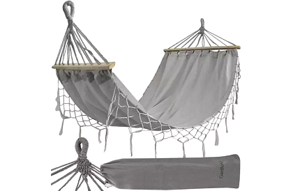 Hojdacia sieť pre záhradu, terasu alebo balkón prináša maximálny komfort a oddych. Vďaka mäkkému a odolnému materiálu sa v nej pohodlne opaľujete, čítate alebo len relaxujete. Drevené priečky rozkladajú sieť do pohodlnej polohy ako posteľ a pletené šnúry zabezpečujú bezpečné zavesenie. Hojdacia sieť je vhodná na trvalú inštaláciu aj na prenášanie na pláž či na cesty.