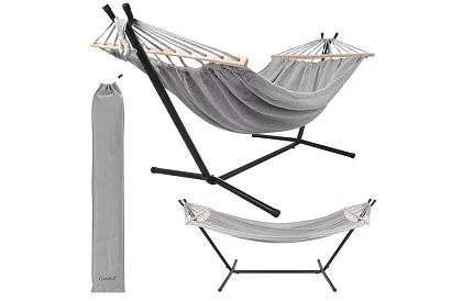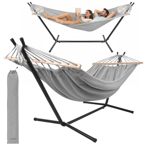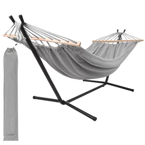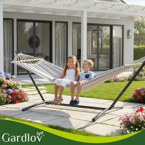 Doprajte si pohodlný odpočinok na záhrade, terase aj balkóne. Dvojmiestna hojdacia sieť s pevným kovovým stojanom ponúka stabilné a bezpečné miesto na relaxáciu osamote aj vo dvojici. Priestranná ležiaca plocha 200 × 150 cm a nosnosť až 250 kg zaisťujú komfort bez obmedzení. Vďaka rozpěrným dreveným tyčiam zostáva tkanina rovnomerne rozprestretá a nesroluje sa, čo prináša viac priestoru a pohodlnejšiu polohu pri ležení.