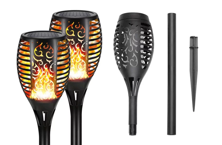 Solárne dekoratívne svietidlo v modernom dizajne. Solárne svietidlo sa cez deň nabíja, v noci svieti. Vytvorí jedinečnú atmosféru v záhrade alebo na terase, imitácia horiaceho plameňa.