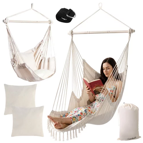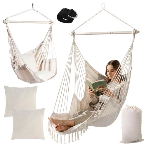 Záhradné závesné kreslo BOHO 2 v 1 prináša maximálne pohodlie a štýlový vzhľad do záhrady, na balkón aj do interiéru. Priestranné prevedenie, pevná bavlnená tkanina a stabilná konštrukcia vytvárajú ideálne miesto pre relaxáciu, čítanie aj oddych po náročnom dni. Vďaka možnosti využitia ako kreslo aj hojdacia sieť poskytuje variabilitu podľa aktuálnej potreby. Dva mäkké vankúše a pevná kovová tyč zaisťujú komfort a bezpečné používanie bez kompromisov.