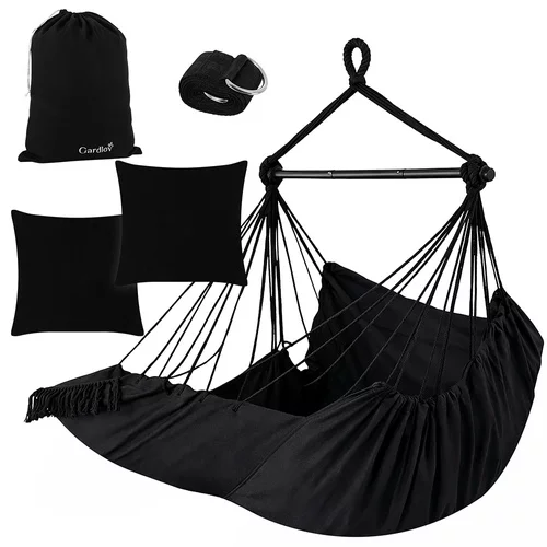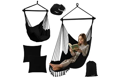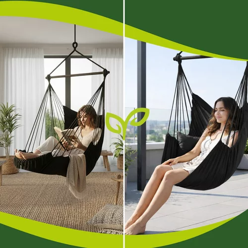 Záhradné závesné kreslo poskytuje maximálne pohodlie a relaxáciu na záhrade, balkóne, terase alebo v obývacej izbe. Pevná bavlnená látka a stabilná kovová tyč zaisťujú bezpečné hojdanie a komfortné sedenie či ležanie. Dva mäkké vankúše prinášajú okamžité pohodlie a ergonomický tvar kresla podporuje správnu polohu tela. Skvelá voľba pre čítanie, oddych alebo pokojný okamih relaxácie.