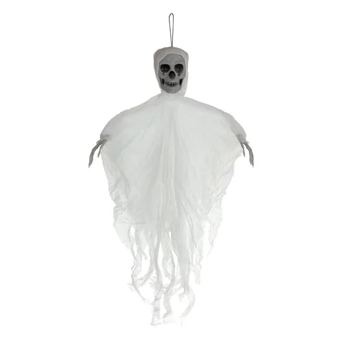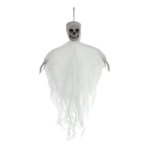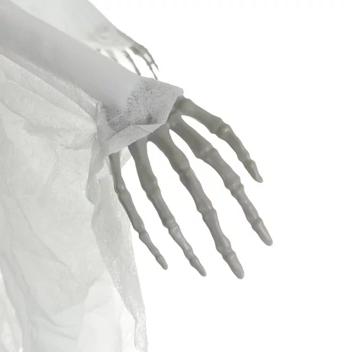 Pôsobivá halloweenska dekorácia, ktorá okamžite navodí atmosféru hrôzy. Realistická kostra s lebkou a potrhanou látkou vytvára dramatický efekt. Vďaka ľahkej konštrukcii a pútku na zavesenie ju možno umiestniť kamkoľvek – na strop, dvere, lampu alebo na záhradu. Pohybujúca sa látka vo vetre dodáva iluziu vznášajúceho sa zjavenia a veľký rozmer zabezpečuje, že dekorácia priťahuje pozornosť. Ideálne pre Halloween, tematické párty alebo pódiové dekorácie.