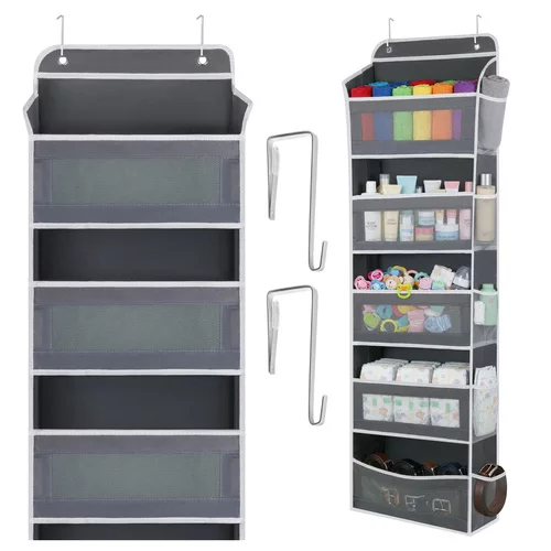 Nedostatok úložného priestoru sa ľahko vyrieši závesným organizérom na dvere, ktorý využíva vertikálny priestor bez nutnosti vŕtania. Pomáha prehľadne usporiadať drobnosti v kúpeľni, skrini aj detskej izbe a udržať domácnosť čistú a organizovanú. Vďaka priestranným policiam, praktickým vreckám a jednoduché inštalácii získate viac miesta počas niekoľkých sekúnd.