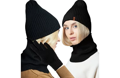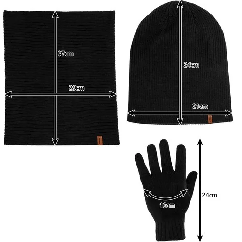 Chráňte sa pred chladom s praktickým a štýlovým setom 3 v 1. Tento zimný set obsahuje čiapku, nákrčník a rukavice v elegantnej čiernej farbe. Hrejivý akryl zabezpečuje komfort a pohodlie pri nosení, zatiaľ čo univerzálny dizajn padne ako ženám, tak mužom. Nákrčník sa dá použiť aj ako masku alebo pokrývku hlavy podľa potreby a počasia.